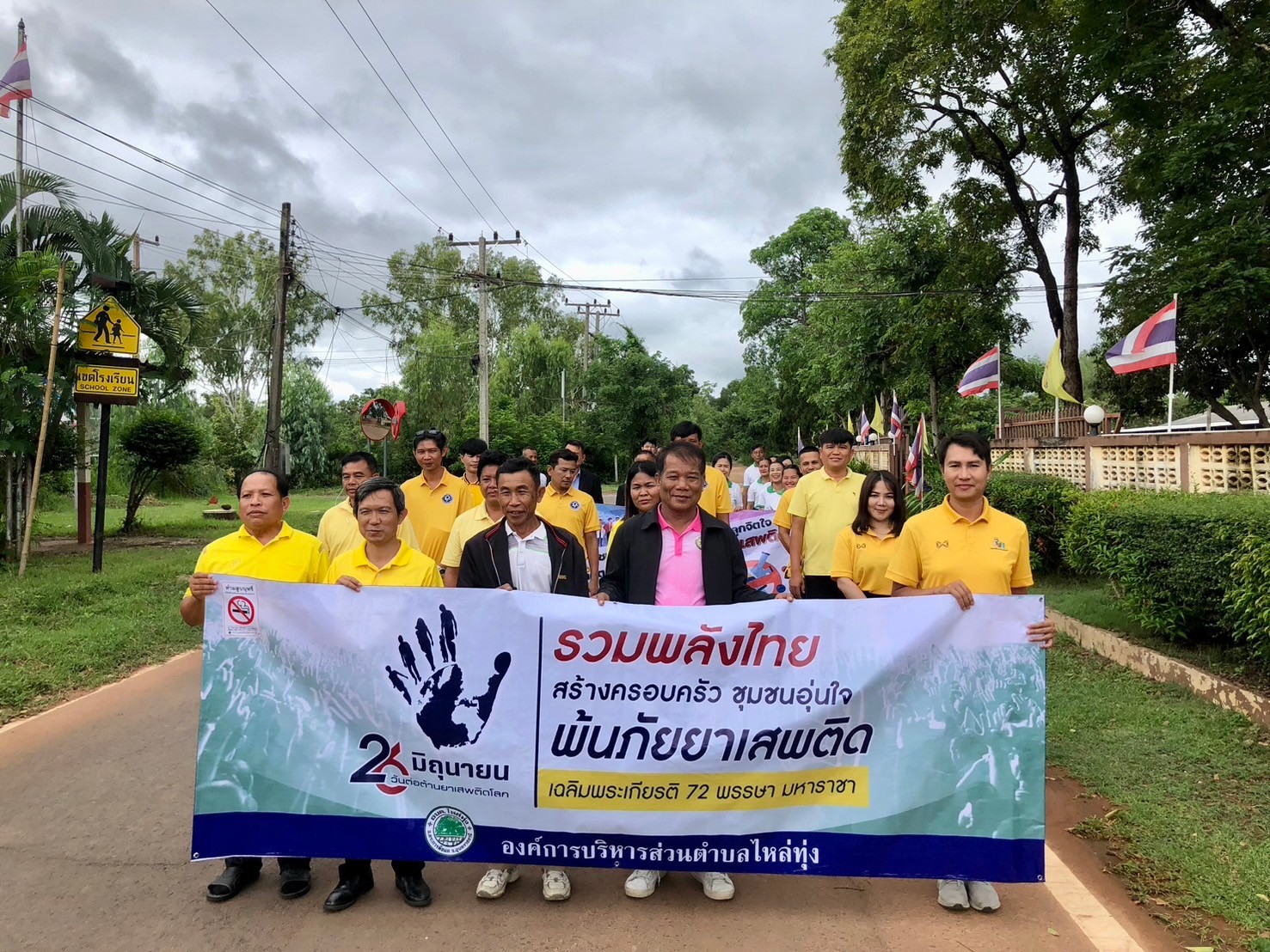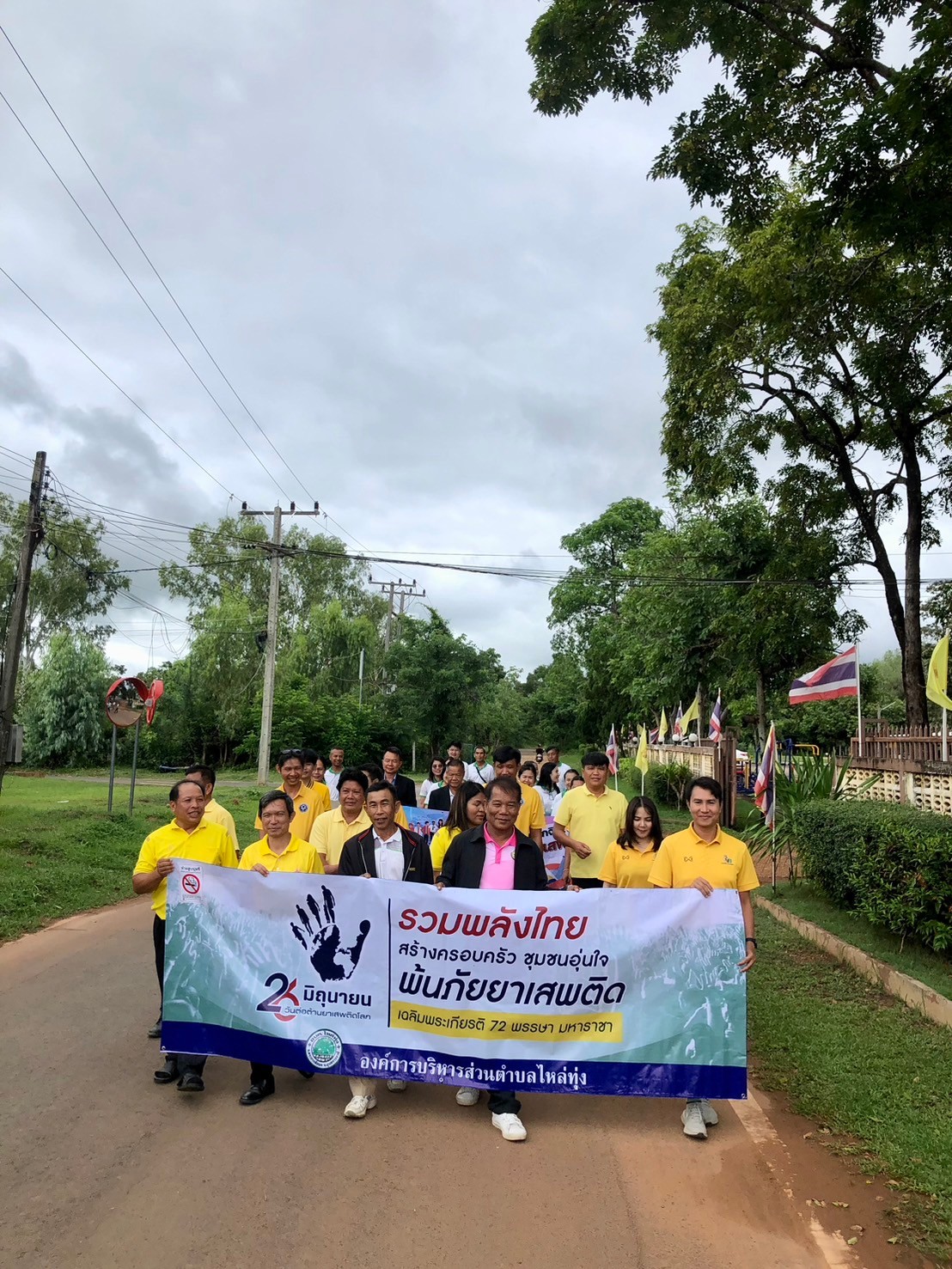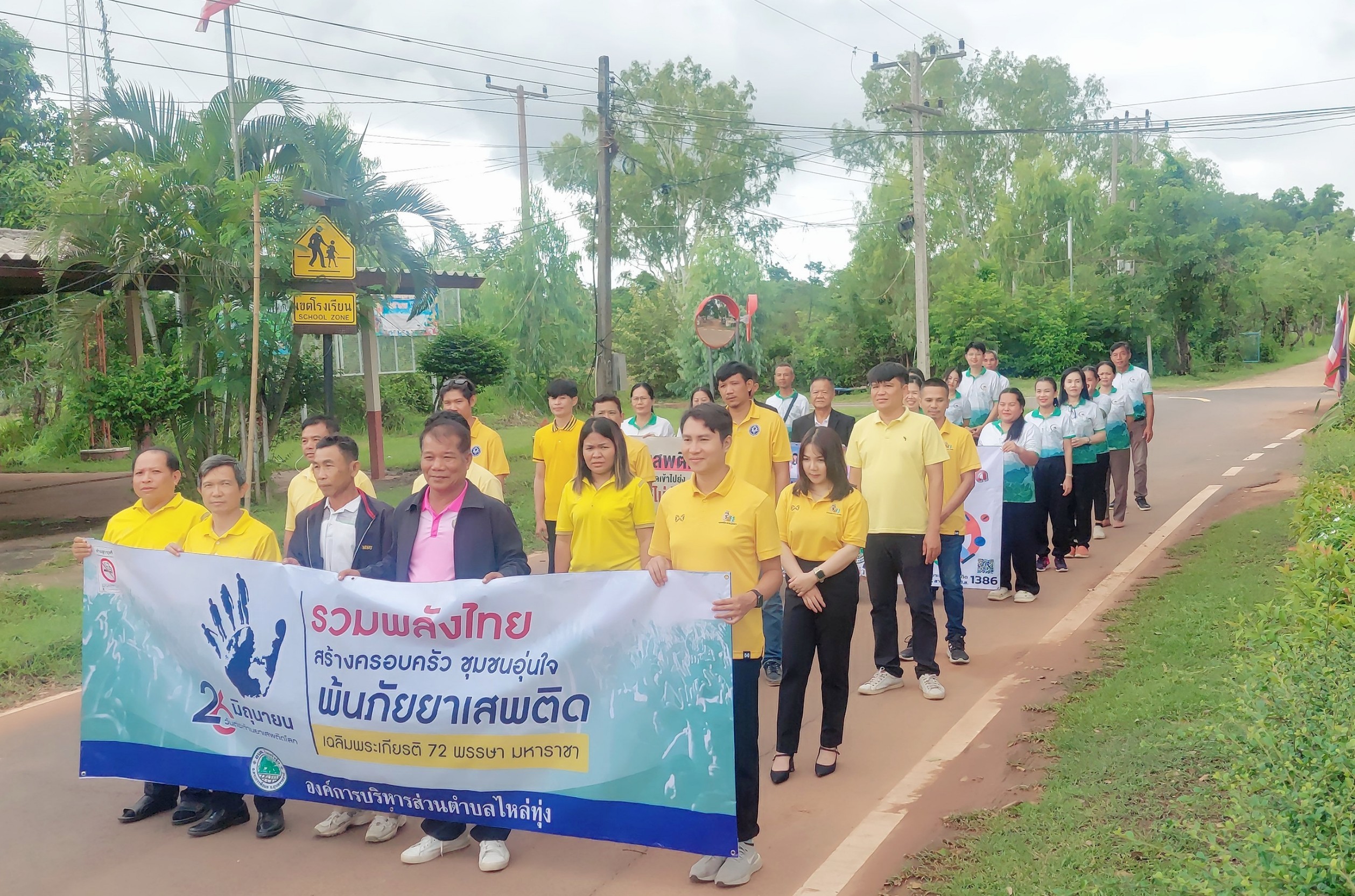 องค์การบริหารส่วนตำบลไหล่ทุ่ง เดินรณรงค์ต่อต้านยาเสพติดภายใต้กรอบเเนวคิด "รวมพลังไทย สร้างครอบครัว ชุมชนอุ่นใจ พ้นภัยยาเสพติด เฉลิมพระเกียรติ 72 พรรษา มหาราชา"