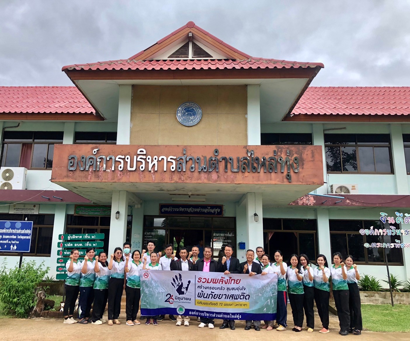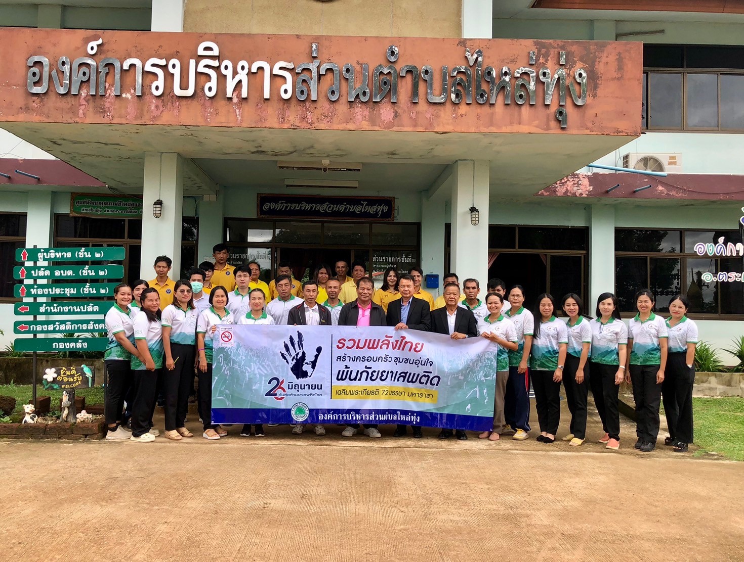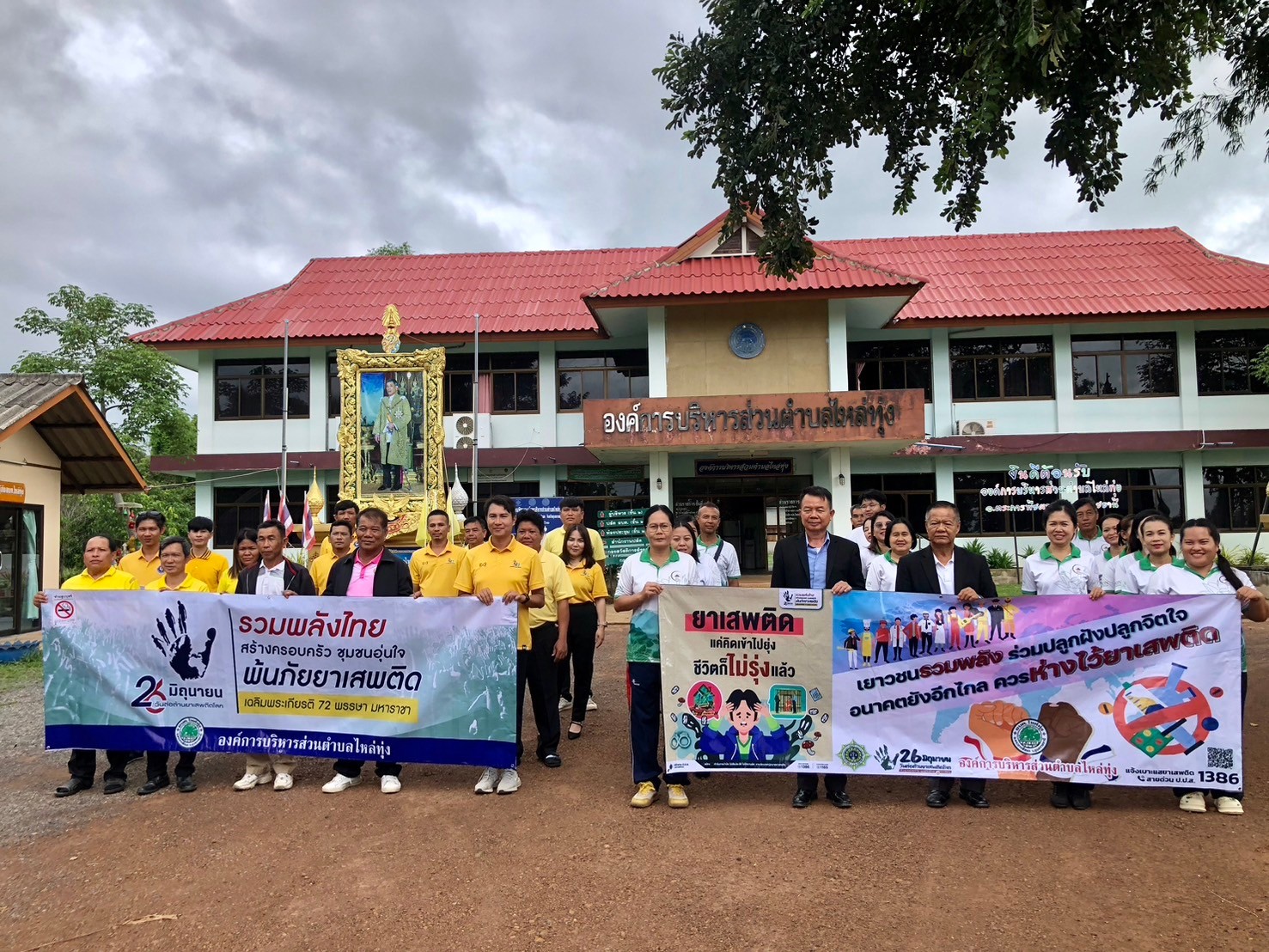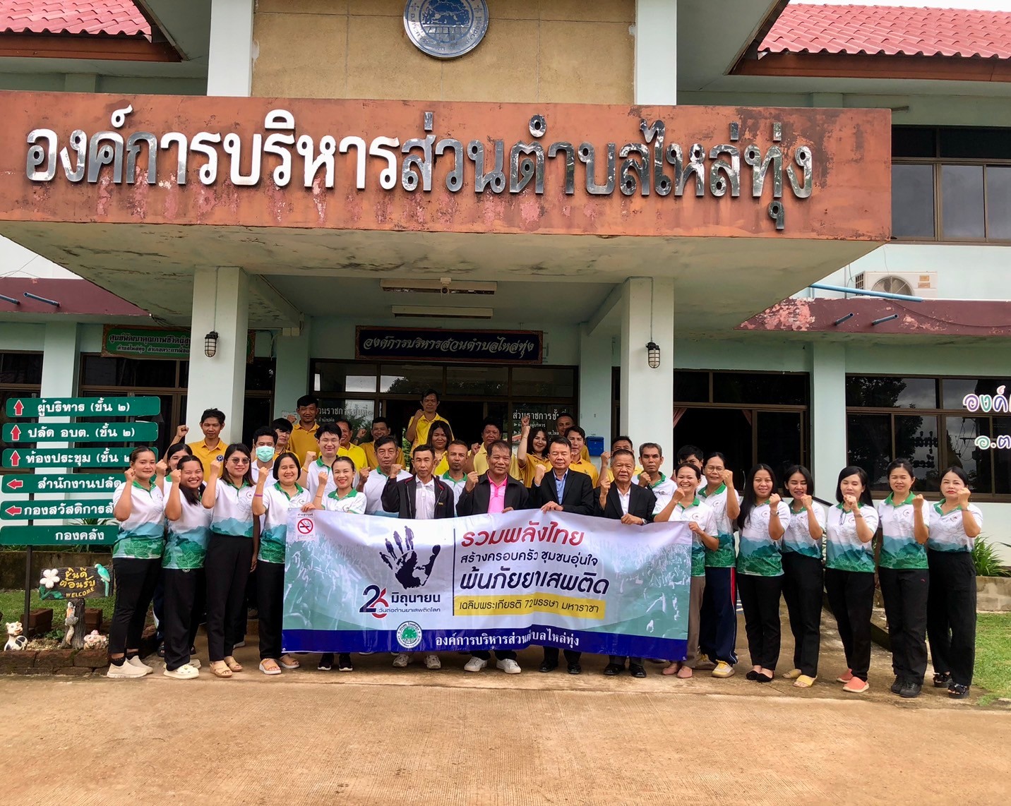 องค์การบริหารส่วนตำบลไหล่ทุ่ง เดินรณรงค์ต่อต้านยาเสพติดภายใต้กรอบเเนวคิด "รวมพลังไทย สร้างครอบครัว ชุมชนอุ่นใจ พ้นภัยยาเสพติด เฉลิมพระเกียรติ 72 พรรษา มหาราชา"