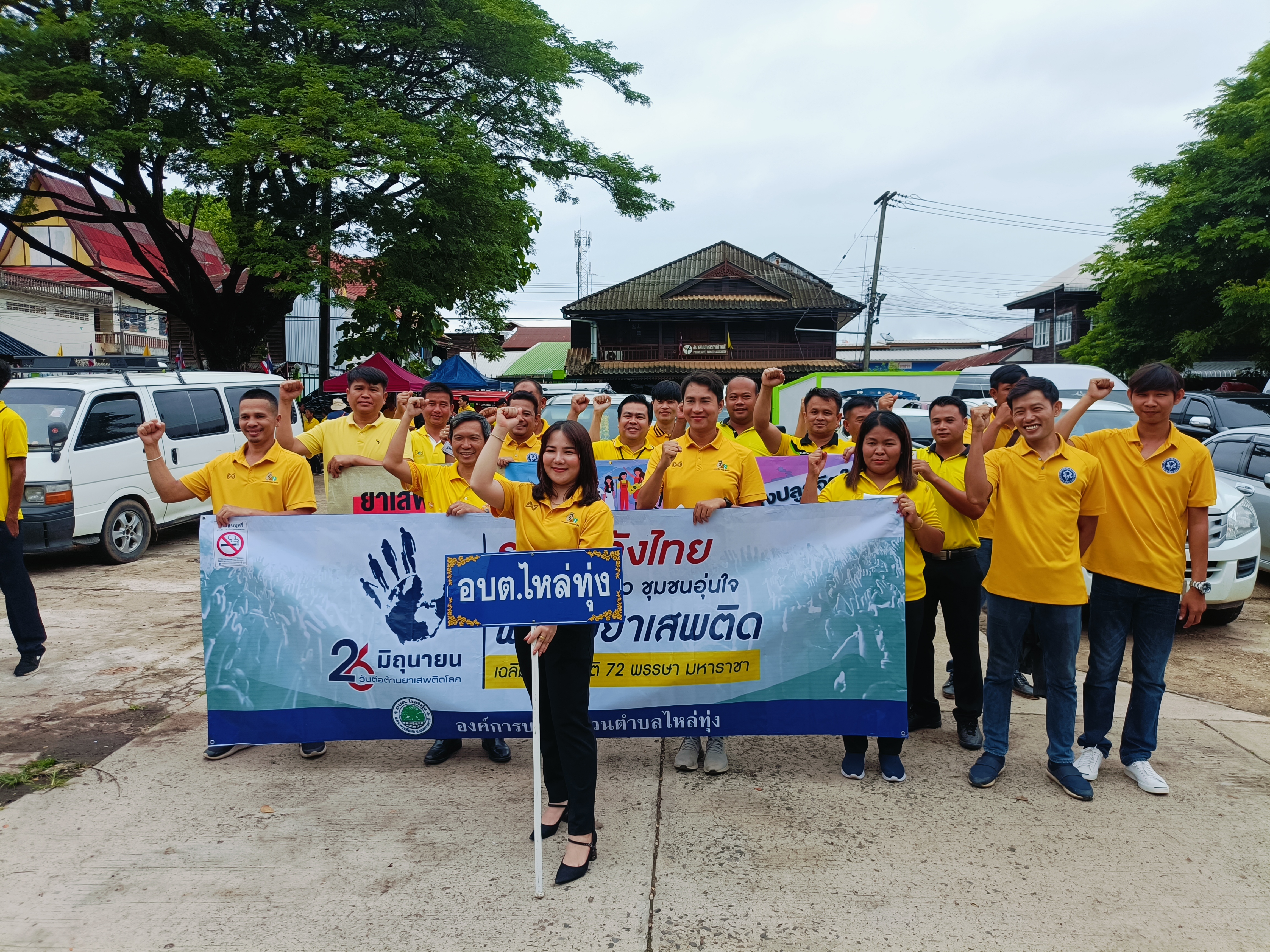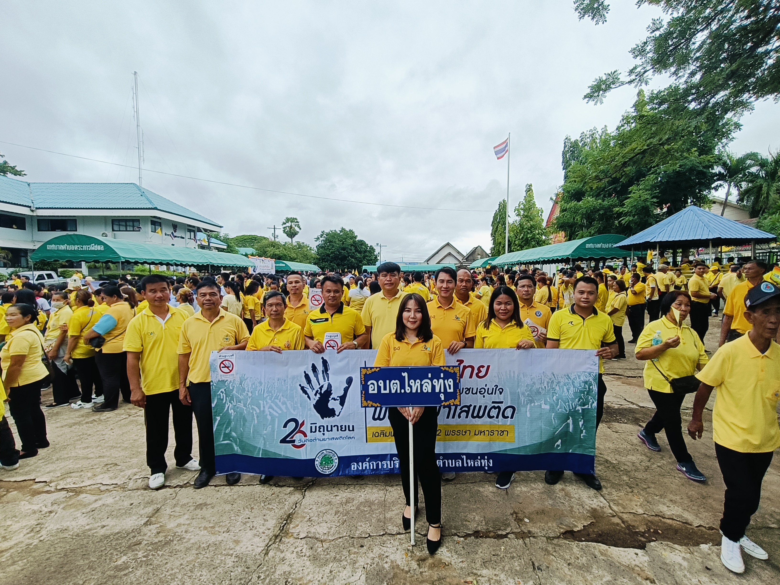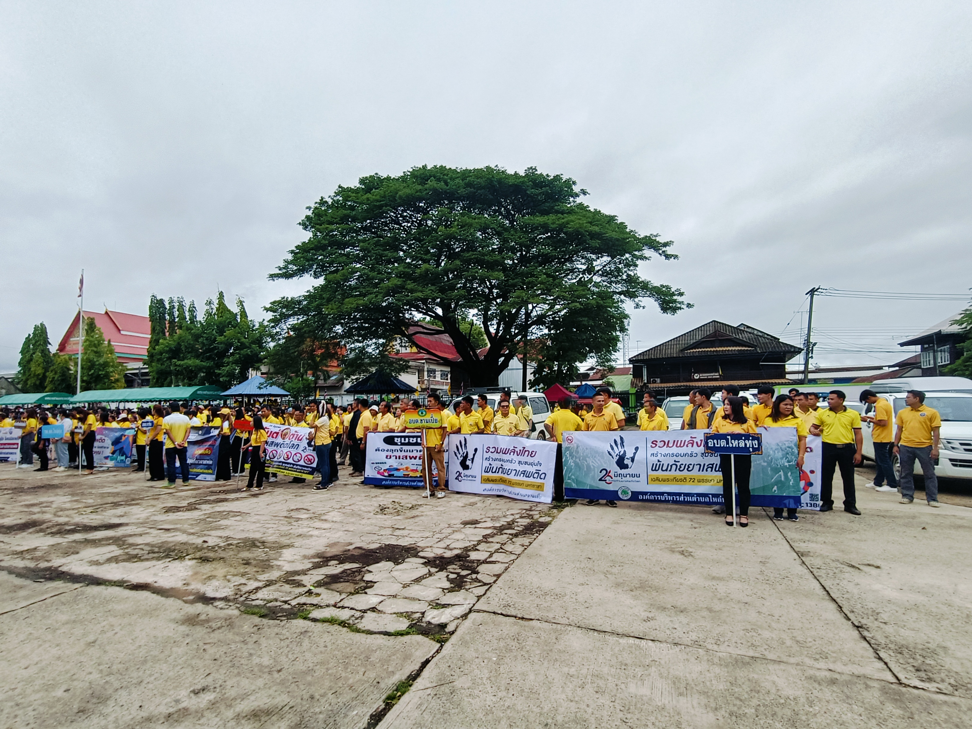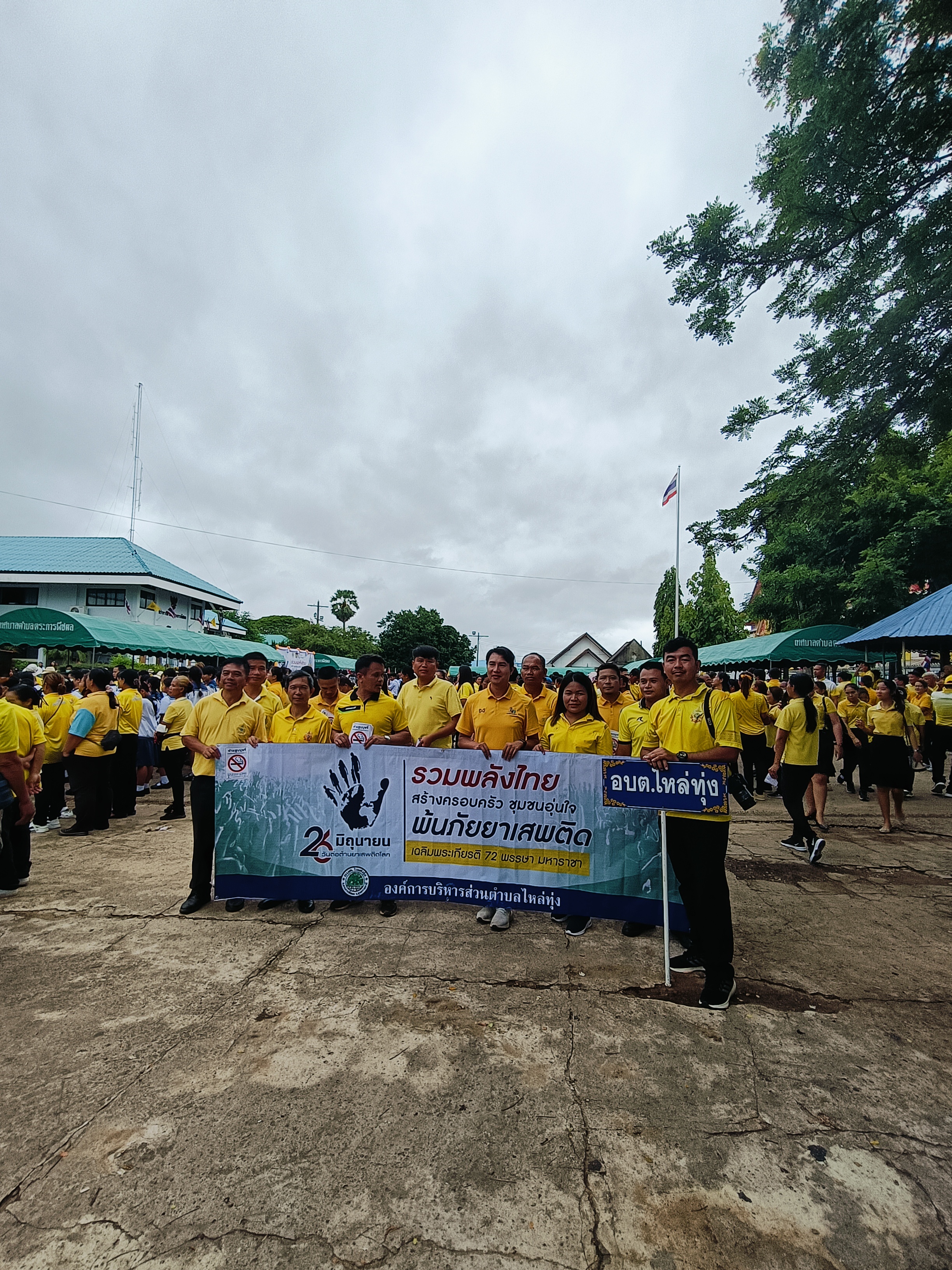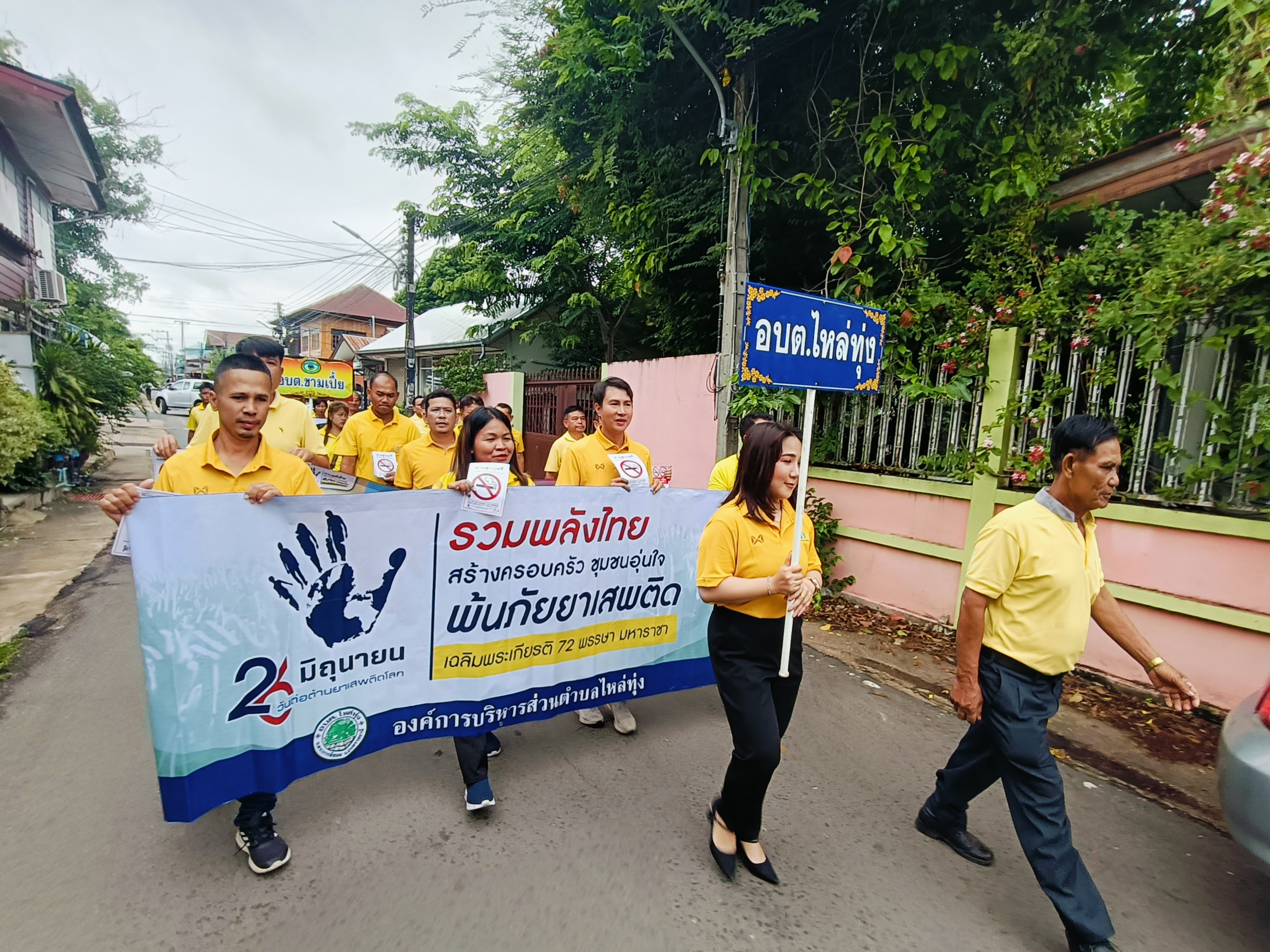 องค์การบริหารส่วนตำบลไหล่ทุ่ง เข้าร่วมเดินรณรงค์ต่อต้านยาเสพติดภายใต้กรอบเเนวคิด "รวมพลังไทย สร้างครอบครัว ชุมชนอุ่นใจ พ้นภัยยาเสพติด เฉลิมพระเกียรติ 72 พรรษา มหาราชา"