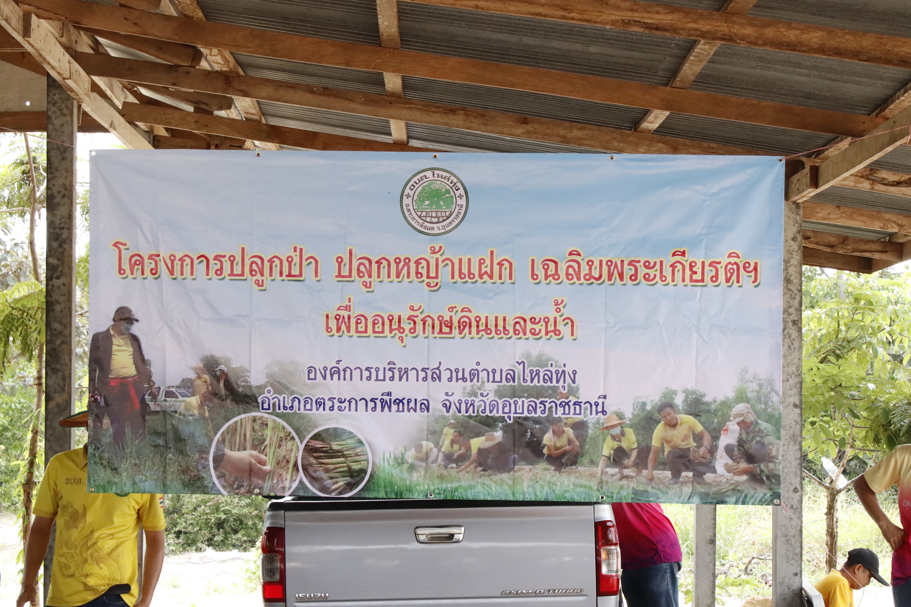 โครงการปลูกป่า ปลูกหญ้าแฝก เฉลิมพระเกียรติฯเพื่ออนุรักษ์ดินและน้ำ โดย นายเริ่ม จันทร์สุข นายกองค์การบริหารส่วนตำบลไหล่ทุ่ง พร้อมด้วยหัวหน้าส่วนราชการ,พนักงานและเจ้าหน้าที่,สมาชิกภสา อบต.ไหล่ทุ่ง,กำนันตำบลไหล่ทุ่งผู้นำชุมชน ร่วมกิจกรรมโครงการปลูกต้นไม้เฉลิมพระเกียรติ โดยมีวัตถุประสงค์เพื่อเพิ่มพื้นที่ป่า รักษาระบบนิเวศนิเวศและปลูกจิตสำนึกในการอนุรักษ์ทรัพยากรธรรมชาติและป่า สร้างความมั่นคงทางอาหาร สร้างสิ่งแวดล้อมให้ยั่งยืน ณ พื้นที่สาธารณประโยชน์ดอนพระโรจน์ บ้านบ่อหิน หมู่ที่ 5 ตำบลไหล่ทุ่ง อำเภอตระการพืชผล จังหวัดอุบลราชธานี