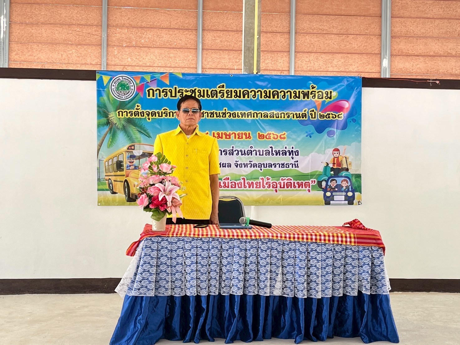 วันที่ 4 เมษายน 2568 นำโดย นายเริ่ม จันทร์สุข นายกองค์การบริหารส่วนตำบลไหล่ทุ่ง และเจ้าหน้าที่องค์การบริหารส่วนตำบลไหล่ทุ่ง ได้ดำเนินการประชุมเตรียมความพร้อมการตั้งจุดบริการประชาชนช่วงเทศกาลสงกรานต์ ปี 2568