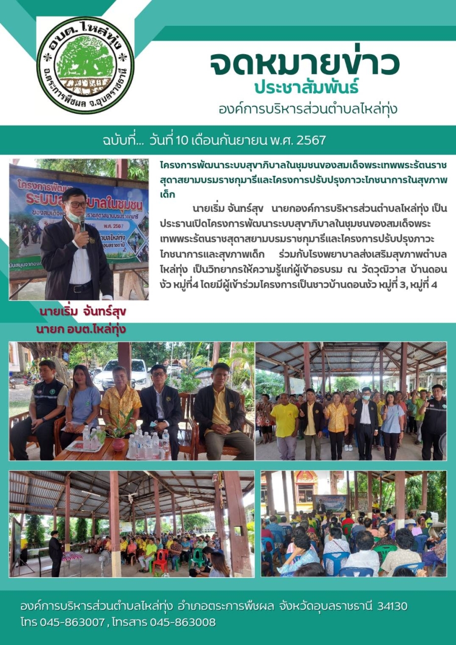 นายเริ่ม จันทร์สุข นายกองค์การบริหารส่วนตำบลไหล่ทุ่ง ร่วมเป็นประธานเปิดโครงการพระราชดำริ ด้านสาธารณสุข ได้แก่โครงการพัฒนาระบบสุขาภิบาลในชุมชน และโครงการปรับปรุงภาวะโภชนาการและสุขภาพเด็ก ร่วมกับโรงพยาบาลส่งเสริมสุขภาพตำบลไหล่ทุ่ง เป็นวิทยากรให้ความรู้ ณ วัดวุฒิวาส หมู่ที่ 4 และมีผู้เข้าร่วมโครงการ ได้แก่ ประชาชนหมู่ที่ 3 และ หมู่ที่ 4 บ้านดอนงัว