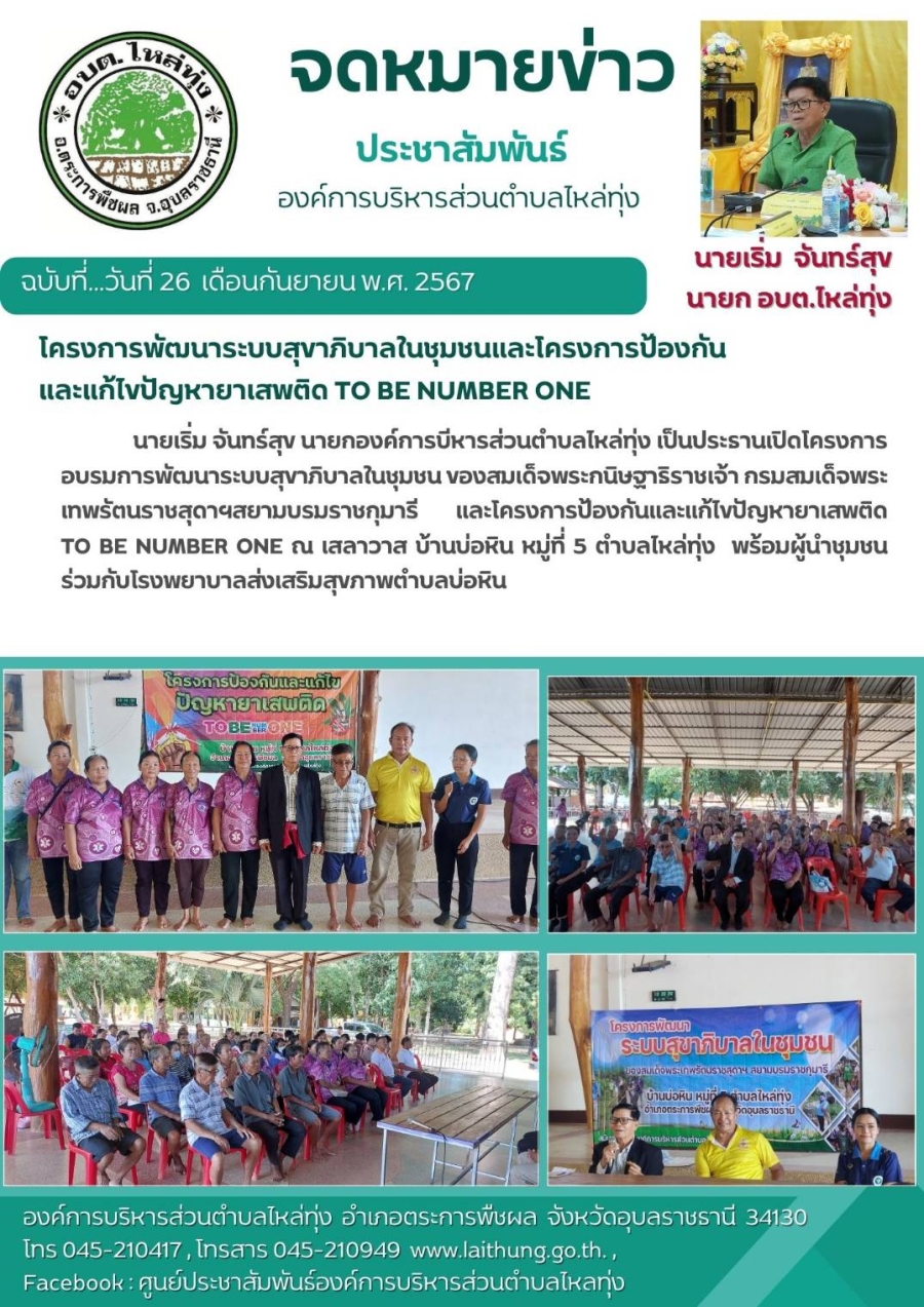 นายเริ่ม จันทร์สุข นายกองค์การบริหารส่วนตำบลไหล่ทุ่ง เป็นประธานเปิดโครงการพระราชดำริด้านสาธารณสุข หมู่ที่ 5 บ้านบ่อหิน